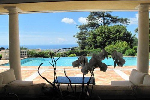 Dans un domaine ultra sécurisé avec parc de 11 hectares, villa bénéficiant d'une vue mer jusqu'au Cap d'Antibes. Elle se compose d'une entrée, séjour, salle à manger, cuisine donnant sur terrasse, une chambre, une salle de bain, 1 wc invité. Au 1er niveau : 3 chambres, une salle de bain Beau jardin auour d'une piscine Chaque habitation est reliée directement au poste de garde principal, chaque appel est immédiatement identifié sur un tableau électronique. Chaque gardien, y compris celui de l'entrée, est relié directement au poste du chef de la sécurité, lui-même gardien de hameau. Tous les gardiens sont reliés entre eux par un système radio, y compris celui chargé de la ronde. Piscine olympique, club house, restaurant, bibliothèque, 8 tennis,terrain de foot et volley, terrain de boules, jardin d'enfants, lac.
